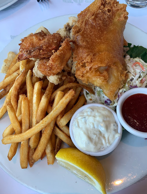 午餐去在网上看到推荐的Fog Harbor Fish House,点了上图推荐的 Clam Chowder,Blue Cheese Bread和 Fish and Chip ,食物都好大份@@